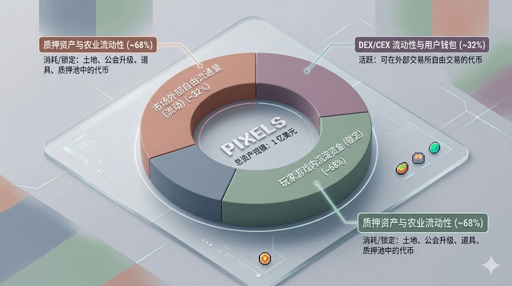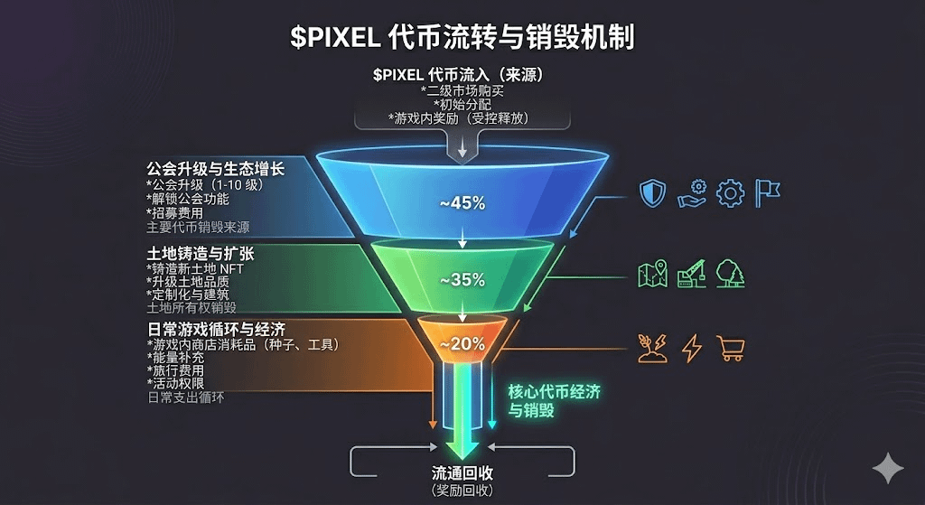 其实真正让我产生兴趣的,不是它表面上种地收菜的玩法,而是它对整个经济系统底层的信任和激励构建。平时我们总习惯去宏大叙事里找机会,却很容易忽略在这样一个像素世界里,微观经济模型正在经历着极其理性的重构。PIXELS把它的代币变成了公会战、土地升级的刚需消耗品,我花了一整个周末去扒它的代币流转速度,发现它的产出与销毁比例被调节得极其克制。这种设计让那些试图通过恶意抛压来砸盘的玩家,在机制上就被自然淘汰了