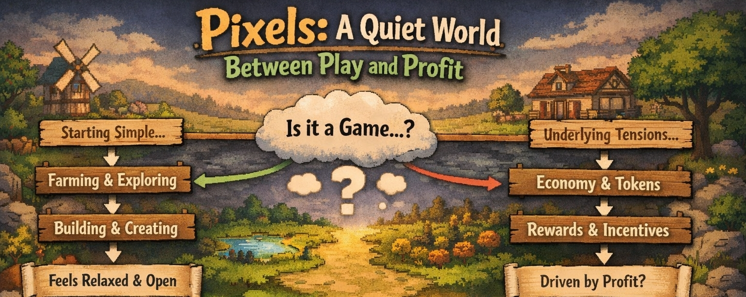 I think what keeps me interested is that Pixels doesn’t feel like it has fully revealed itself yet. It’s not trying to answer every question upfront. It’s just… there. Growing, adjusting, letting players shape part of it. That can go in different directions. Sometimes it leads to something genuine. Other times, it slowly becomes something more mechanical, more predictable.