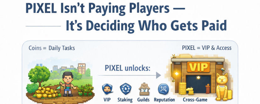 Pixels looks calm on the surface. You plant crops, walk between plots, talk to neighbors, maybe craft something simple. But underneath that relaxed pace, something more interesting is happening. Pixels isn’t really about farming — it’s about coordination. The token isn’t just a reward you collect after doing chores. It quietly tells players where to go, what to build, when to commit, and when to switch sides.