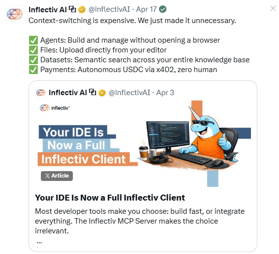 We fixed that. Agents, datasets, files, and payments are all running directly from your IDE. One surface, full stack.
