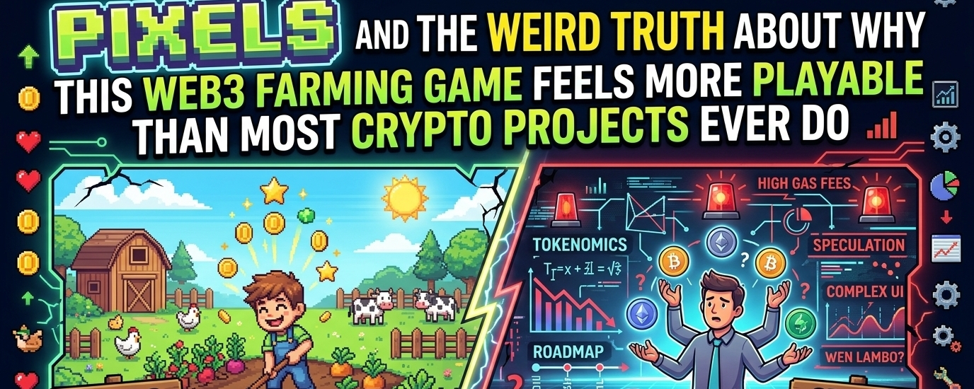 The biggest issue with Pixels is the same issue that hits almost every Web3 game before you even start playing it: the crypto label. The second people hear “blockchain game,” they expect hype, tokens, fake promises, and a lot of talk about the future instead of the actual game. And honestly, that reaction makes sense. Most crypto games have felt more like money experiments than real games. They give you economies, roadmaps, and buzzwords, but not much fun.