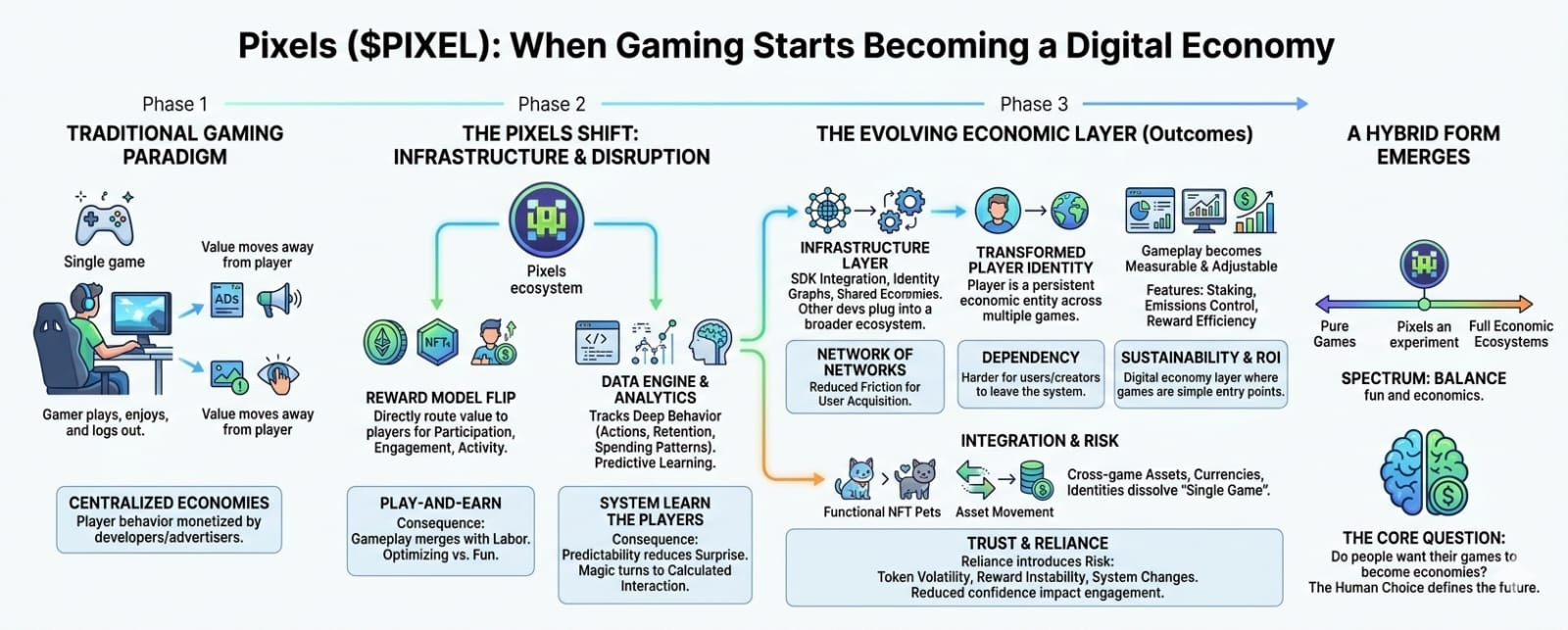 Pixels is not a finished answer — it’s an experiment. A live test of whether people are willing to exist in systems where play and value are inseparable.