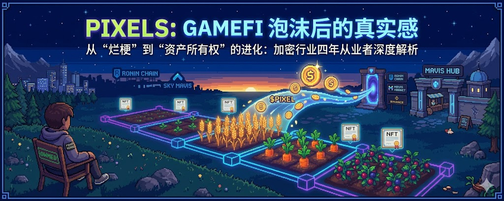 兄弟们,深夜好,今天想了一天也不知道写点什么,说是话在加密行业摸爬滚打已经四年多了,GameFi这个词对我来说一度是个烂梗自从P2E的泡沫破灭之后,我亲眼看着身边好几个好哥们把辛苦攒下来的钱全部都砸了进去,最后什么都没剩下,所以当2023年底有人跟我说PIXELS这个农场游戏值得关注"的时候,我的第一反应是冷笑。