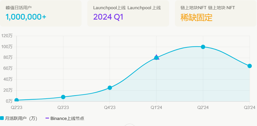 PIXELS背后有Animoca Brands的背书,并于2024年初正式上线币安,随即带来了一波可观的用户增长。巅峰时期,日活用户突破100万,这个数字在GameFi赛道里不是噱头,是实实在在的链上交互数据,Ronin链的低手续费给了它天然的优势玩家真的可以频繁操作而不被gas费吃掉收益