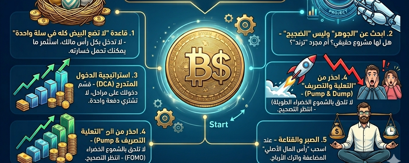 مهما كان المشروع أو العملة يبدو مغرياً في بدايته، لا تدخل بكل رأس مالك. الدخول المبكر يعني مخاطرة عالية لأن العملة لم تثبت استقرارها بعد.