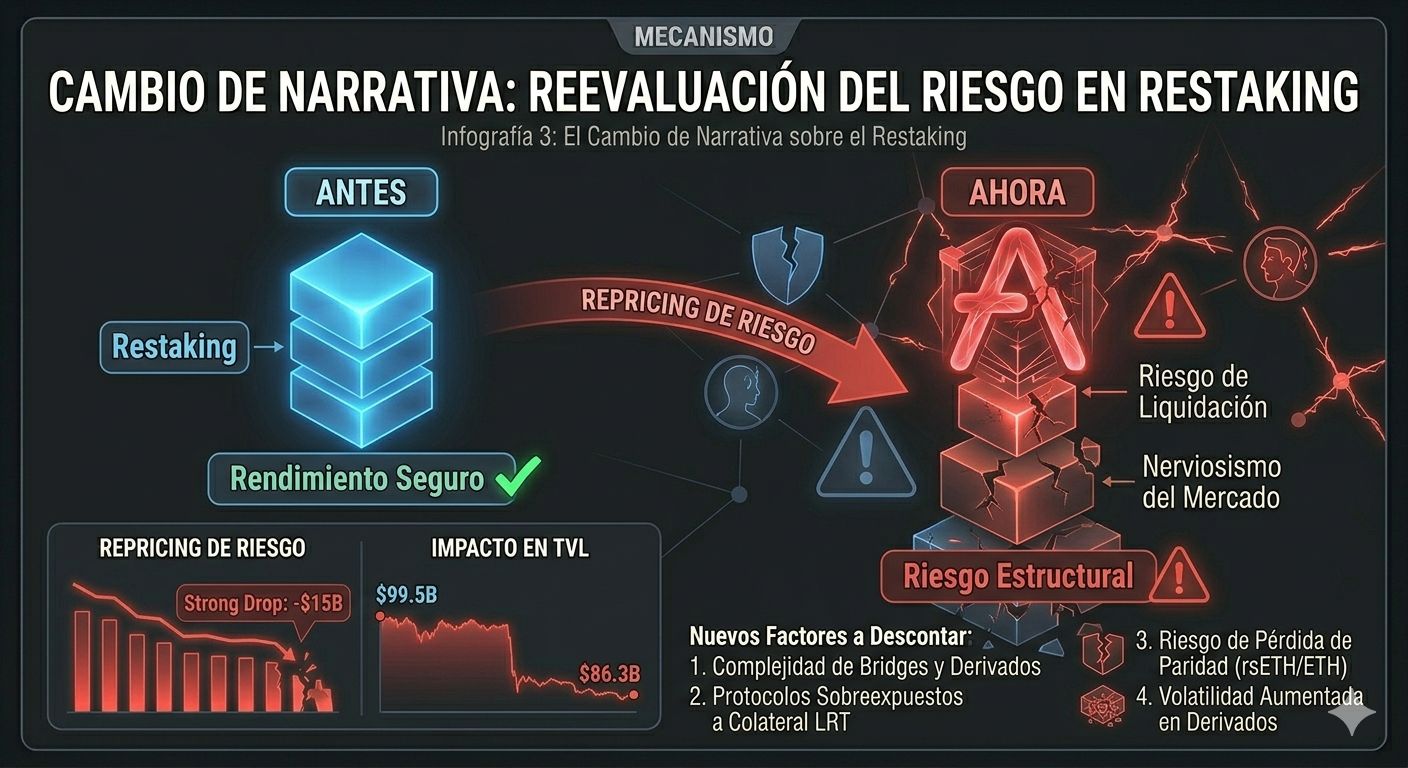 Los LRT pueden introducir riesgo no evidente, Bridges y derivados aumentan la complejidad, los protocolos de lending pueden estar sobreexpuestos y el rendimiento ya no compensa automáticamente el riesgo
