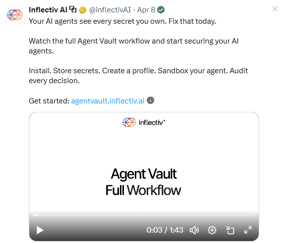 This is how the layers fit together. AgentVault enforces control. Inflectiv ensures every action feeds back into a dataset that gets better with use. Without that last layer, agents can act but they cannot compound. With it, every action contributes to a system that improves.