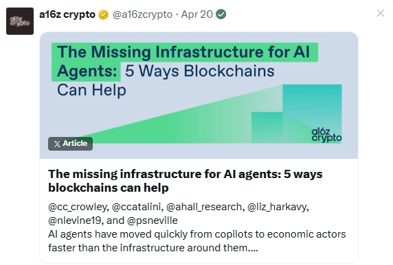 This tracks with what @a16zcrypto laid out in their recent piece on agent infrastructure. Agents are becoming economic actors, but still lack standardized identity, permissions, and coordination across environments. That layer is being built now, with wallets, programmable payments, and verifiable execution forming the foundation. Add control systems like AgentVault, and the full stack comes into view. Agents that can act, pay, and operate within defined boundaries.