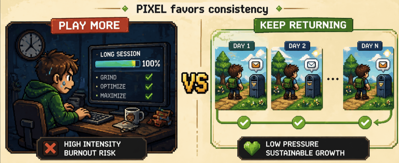 In most systems, engagement is about how long I stay in a single session. The longer I stay, the more “engaged” I am supposed to be. But I’ve also seen how that usually ends. Players optimize quickly, extract what they can, and eventually leave once everything becomes predictable.