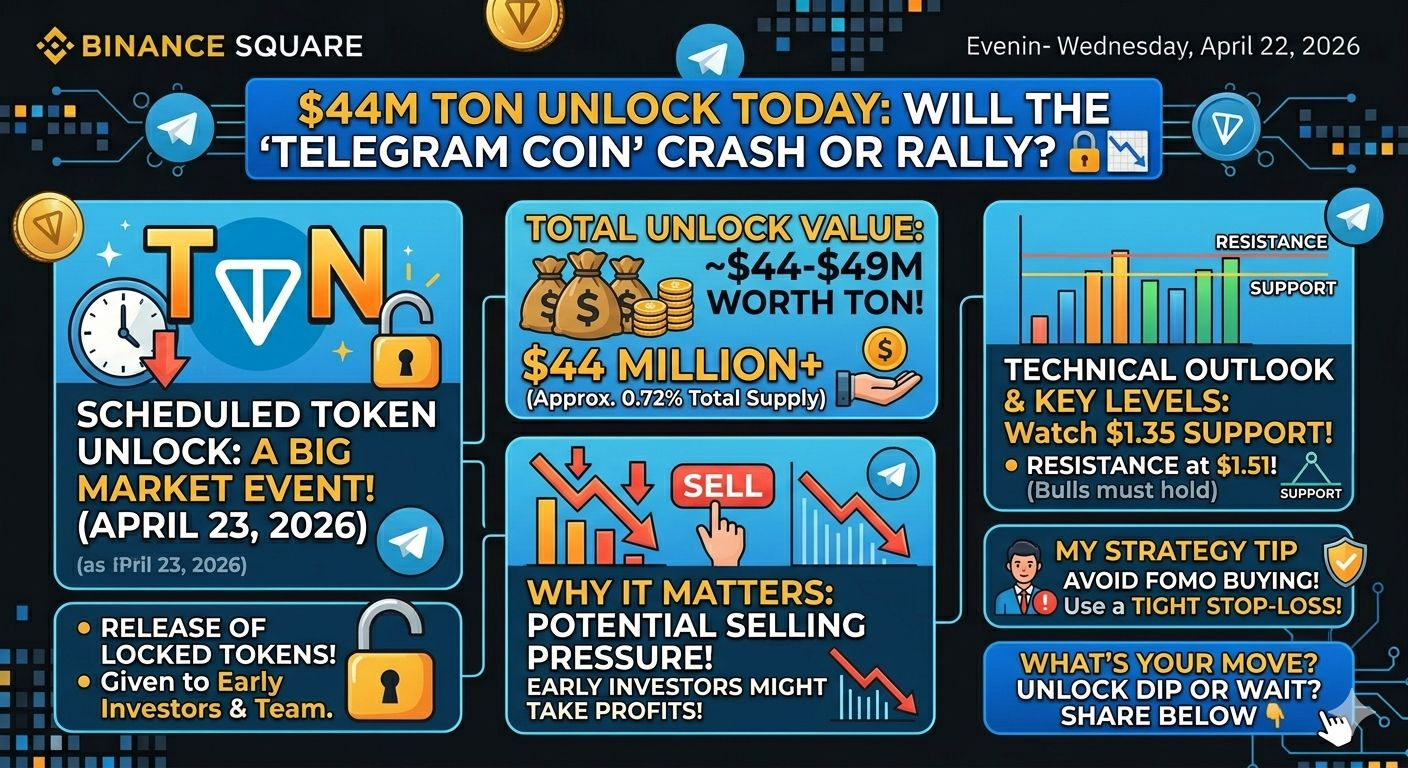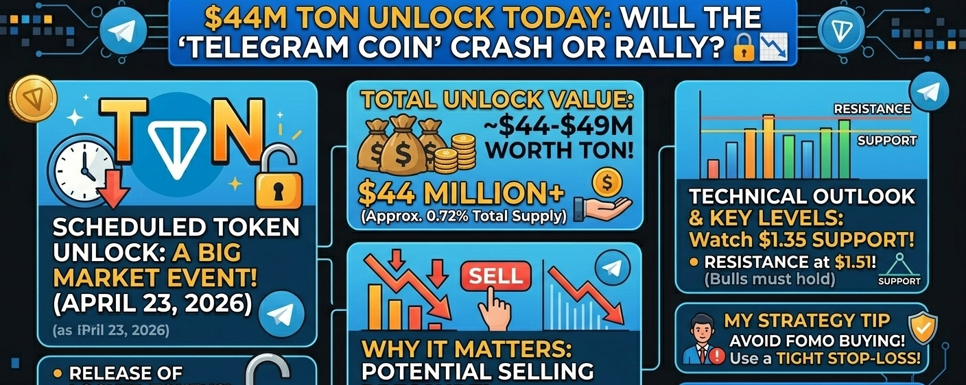 Today, April 23, 2026, the Toncoin ($TON) community is bracing for a significant event. A scheduled token unlock worth approximately **$44–$49 million** is hitting the market. For traders, this is a "make or break" moment that requires a careful strategy.