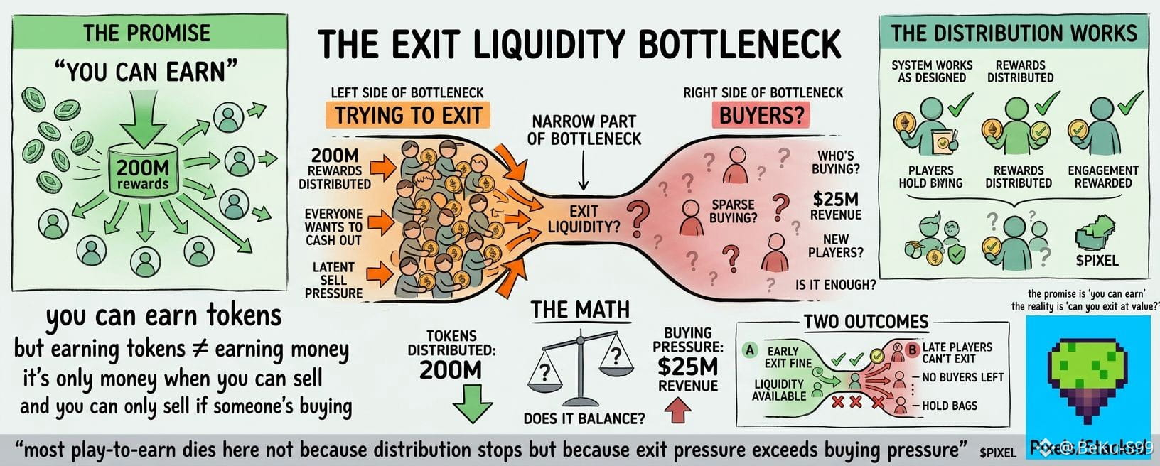 What keeps me coming back is whether Pixels measures exit liquidity as a success metric. Most crypto gaming measures user acquisition, engagement, distribution volume. They don't measure whether players can successfully exit.
