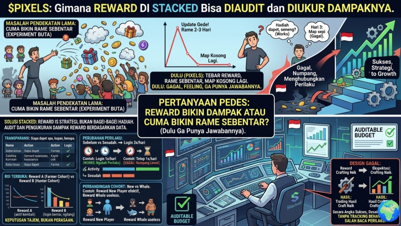 Gua dulu mikir reward di game itu simpel: kasih hadiah, player seneng, beres. Di Pixels, cara mikir ini kebukti salah total. Kita tebar reward ke mana-mana. Hari pertama rame. Hari kedua masih hidup. Hari ketiga map mulai kosong lagi. Pertanyaannya pedes: ini reward bikin dampak, atau cuma bikin rame sebentar?