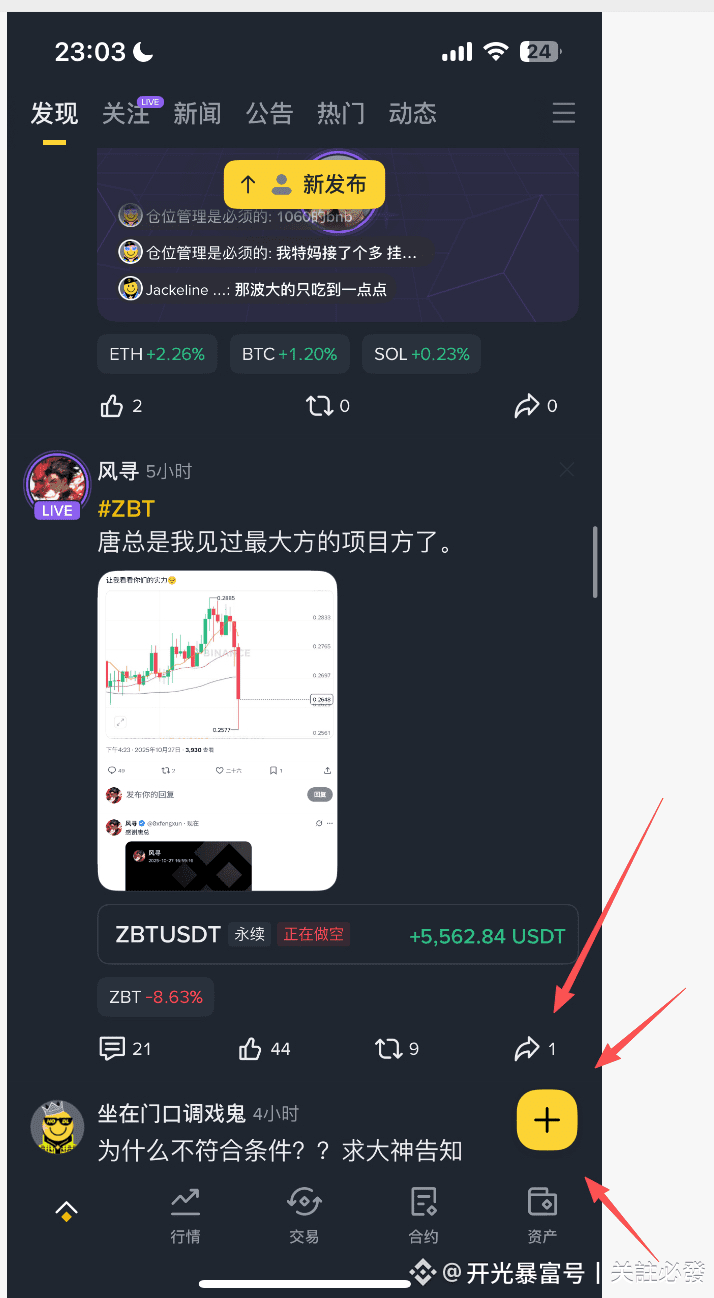 步骤1:在广场首页点击右下角“+”或“发文”按钮,进入编辑界面。