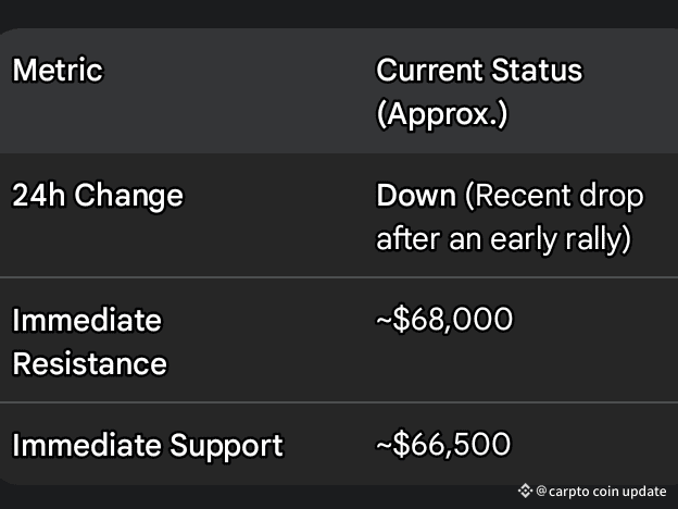 saw a notable drop from its daily high, pushing it toward the key $66,500 support level.
