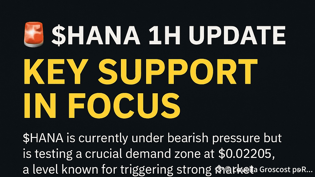 $HANA is currently under bearish pressure but is testing a crucial demand zone at $0.02205, a level known for triggering strong market reactions ⚡ Momentum is still weak, but traders should watch for a potential reversal.
