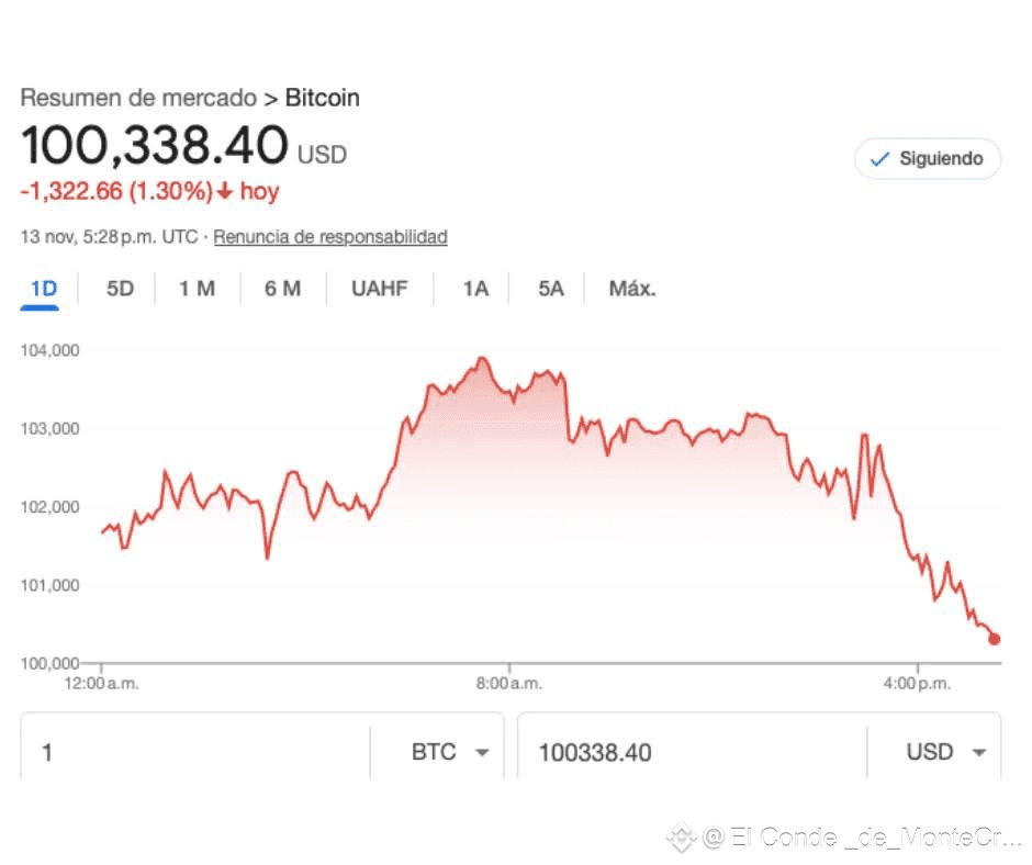 ÚLTIMA HORA: A pesar de que el gobierno de EE. UU. ha reabierto, el alivio en el mercado es nulo. Bitcoin ($BTC) cae a $100,338 USD, cediendo terreno y acercándose de nuevo a la barrera psicológica de los $100K.