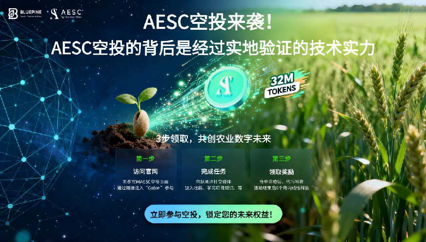 Astăzi, Fundația Bluepine Tech anunță oficial lansarea unui program global de airdrop pentru moneda principală a ecologiei sale, AESC, cu un total de 32 milioane de token AESC distribuite comunității, cu scopul de a recunoaște susținătorii din faza inițială și de a extinde baza comunității globale a ecologiei digitale agricole. Acest airdrop marchează un pas esențial în integrarea tehnologiei blockchain cu agricultura, oferind utilizatorilor din întreaga lume oportunitatea de a participa fără bariere la construirea viitorului agricol.