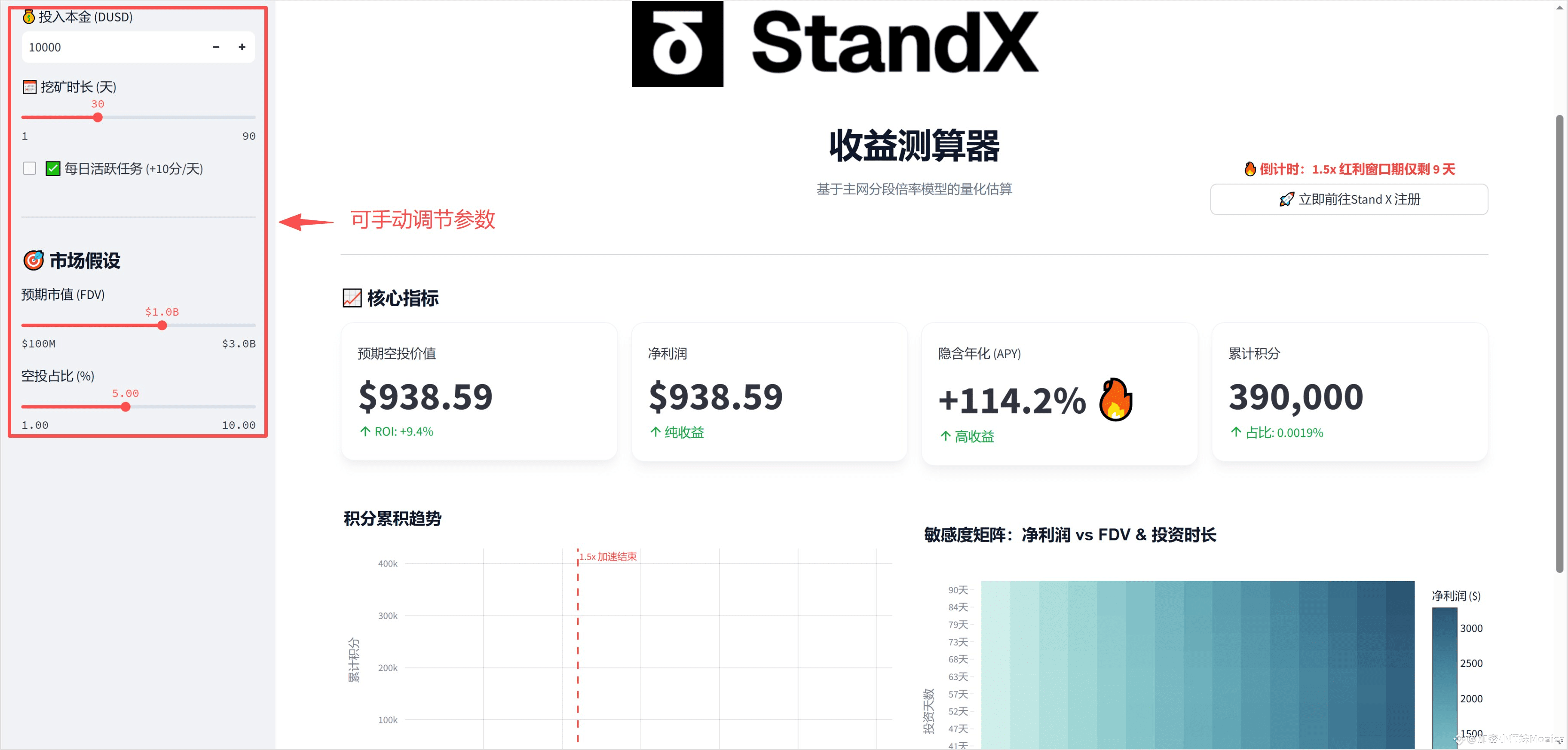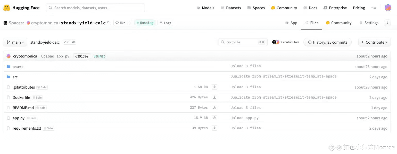 废话不多说,先展示成果,任何人都可以公开访问:https://huggingface.co/spaces/cryptomonica/standx-yield-calc
