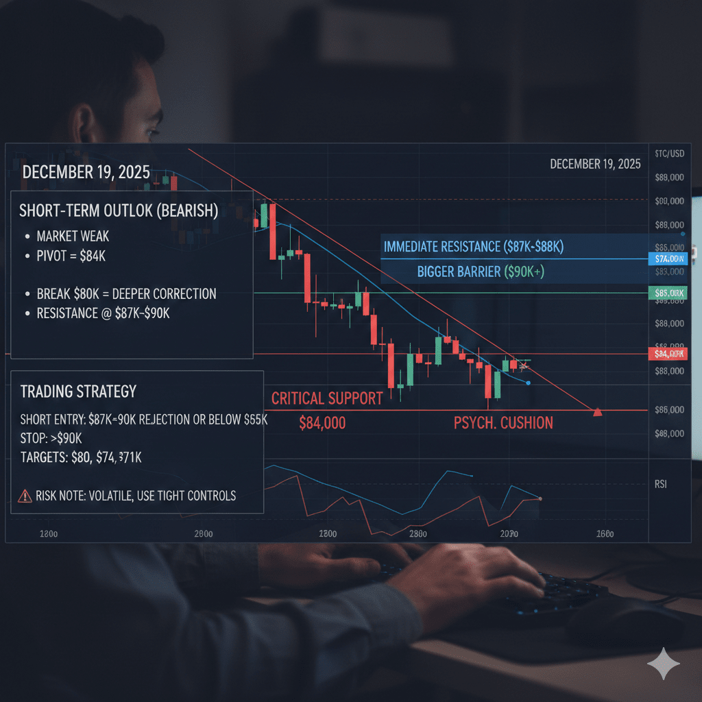 $84.000 — sprijin critic pe termen scurt. O ruptură sub acest nivel deschide următoarea fază descendenta.