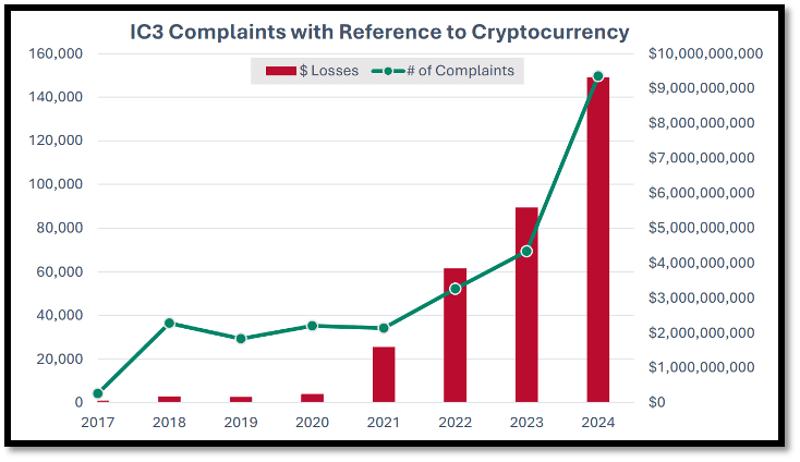 În al doilea rând, această tendință de aplicare a legii subliniază nevoia de măsuri de protecție pentru a evita tranzacțiile cu posibili actori rău intenționați. Potrivit unui raport recent al Centrului pentru Plângeri privind Crimele de pe Internet ale FBI-ului (cunoscut și ca „IC3”), numărul tranzacțiilor de criptomonedă implicate în fraude pare să crească exponențial: