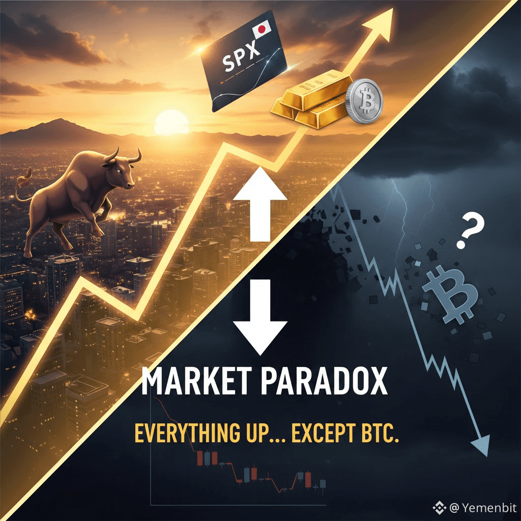 1️⃣ تلاعب أم تجميع استراتيجي؟: هل يتم كبح السعر عمدًا؟ ومن المستفيد من ضغط البيتكوين بينما تزدهر الأسهم والذهب؟