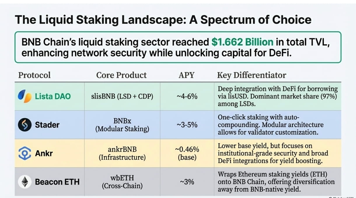 Ankr's institutional focus differentiated it from retail-oriented competitors, with enterprise-grade SLAs and compliance frameworks. Lower base yields were offset by opportunities for DeFi boosts through lending and liquidity provision. The platform's extensive integrations across lending protocols and DEXs provided multiple yield enhancement pathways for ankrBNB holders.