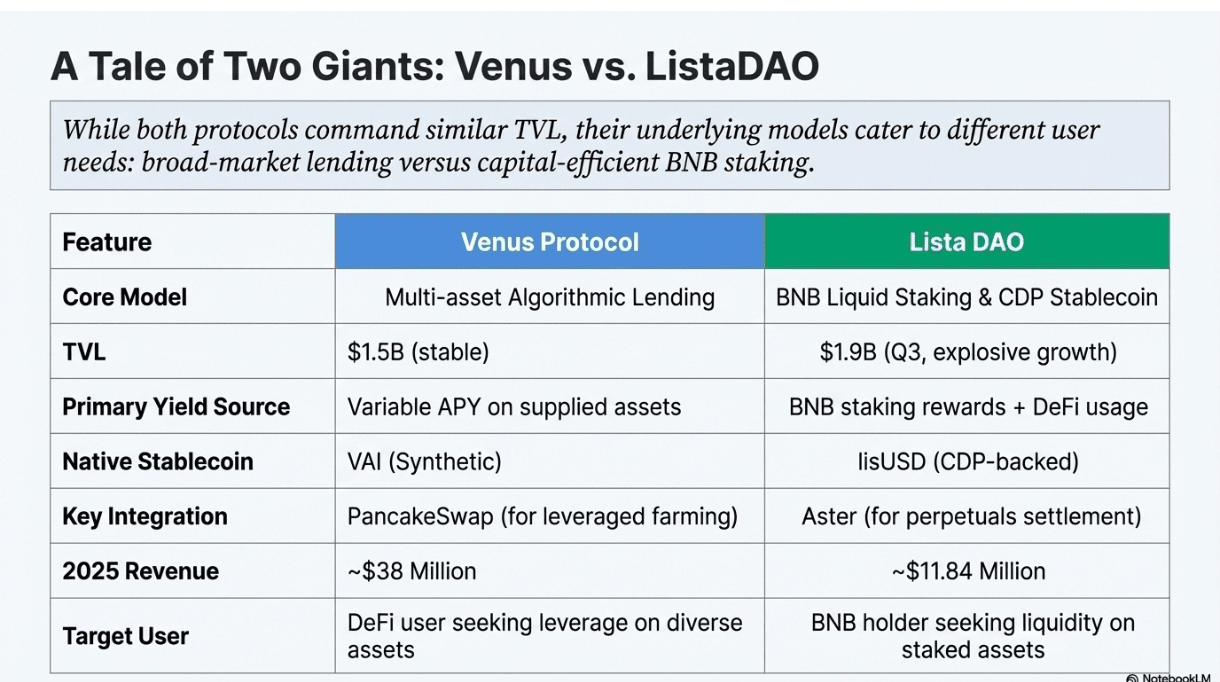 lisUSD stablecoin allowed borrowers to extract liquidity from BNB holdings without selling, maintaining long-term price exposure while accessing working capital. Overcollateralization ratios protected the system from liquidation cascades during market downturns. The CDP model differed from Venus's algorithmic approach by focusing specifically on BNB collateral and stablecoin issuance rather than multi-asset lending markets.