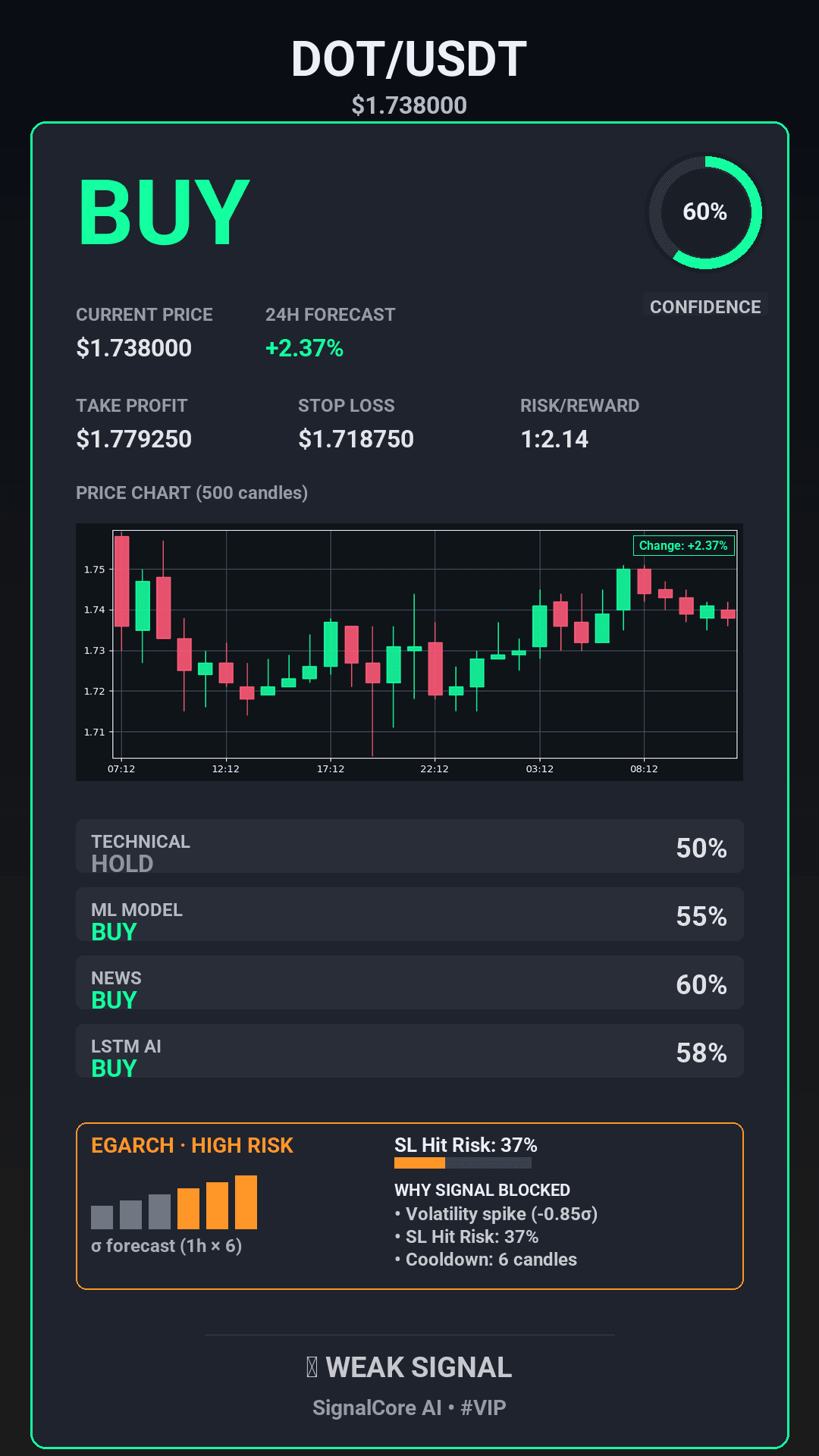 EGARCH HIGH RISK • Spike -0.8σ • Cooldown 6hAnalytics in the image • #VIP