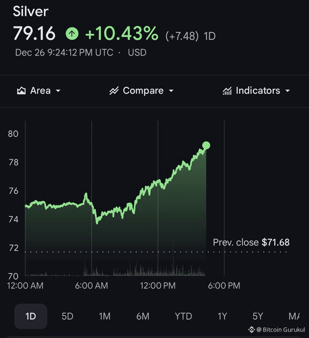 Silver has experienced a remarkable surge, climbing to $79.16 with a substantial 10.43% gain in just one day. While many observers focus solely on price movements, the underlying story reveals something far more significant happening in the global commodities market.