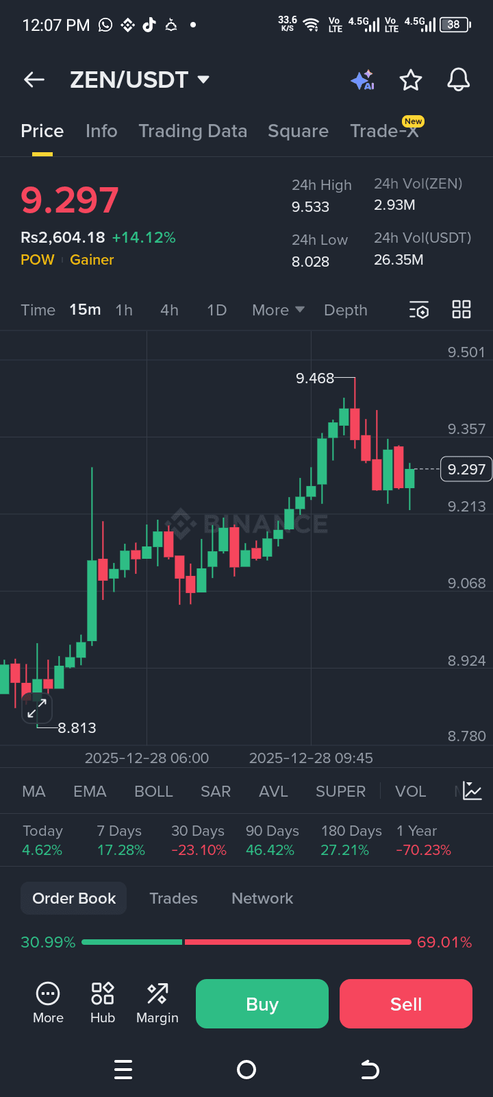 Prețul curent$ZEN se tranzacționează la 9.297 USDT