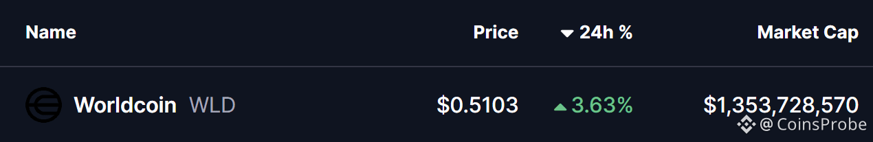 The broader cryptocurrency market is showing modest strength, with both Bitcoin (BTC) and Ethereum (ETH) trading in the green. This steady performance among major assets has helped stabilize overall market sentiment, creating room for select altcoins — including Worldcoin (WLD) — to develop constructive technical setups.