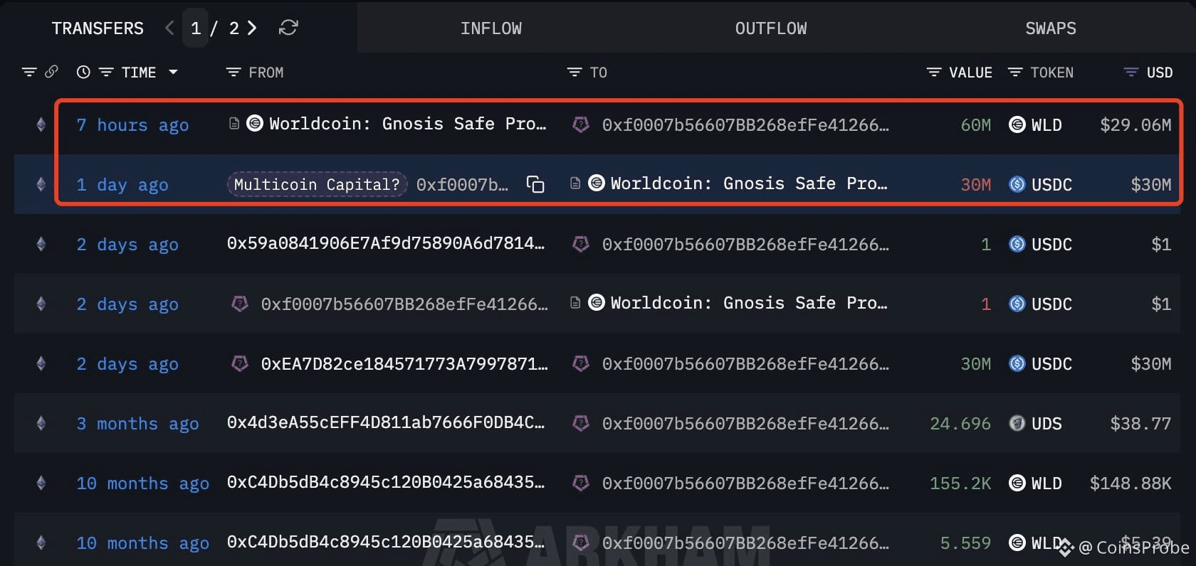 On-chain data has added an extra layer of confidence to WLD’s current setup. According to Lookonchain, on December 25, a wallet (0xf000) linked to Multicoin Capital spent $30 million USDC to acquire 60 million WLD at an average price of $0.50 through an OTC deal.