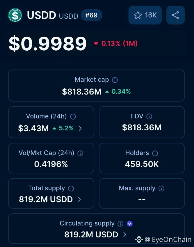 What’s more interesting is the ripple effect. Binance’s push has massively accelerated USD1 issuance, and when you zoom out to USDD, the numbers get kind of wild. USDD -- TRON’s flagship decentralized stable, went through a quiet identity shift earlier this year, moving away from the old algo model into a more conservative, overcollateralized setup. Less drama, more stability.