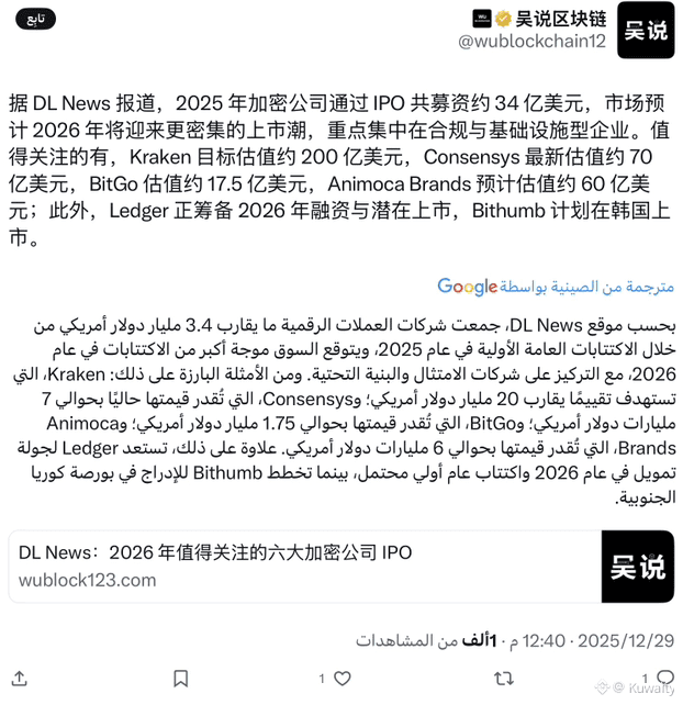 تستعد عدة شركات بارزة حالياً لاحتمال طرحها للاكتتاب العام العام المقبل. وتُعد منصة Kraken المرشح الأكثر تقدماً. ويعود ذلك إلى أن منصة التداول الأميركية قدمت ملفات سرية في أواخر 2025. وتشير التقارير إلى أنها تستهدف تقييماً يقارب 20 مليار دولار. كما تستعد شركة البنية التحتية Consensys، المشغلة لـ MetaMask وInfura، لإدراج محتمل في منتصف 2026. وقد بلغ آخر تقييم للشركة نحو 7 مليارات دولار. وغيّرت تركيزها نحو إيرادات الشركات والمحافظ الرقمية. ونتيجة لذلك، قد تصبح شركة BitGo، المتخصصة في خدمات الحفظ، أول جهة حفظ كبرى للعملات المشفرة تُدرج أسهمها في البورصة. ويقيّم المستثمرون الاستراتيجيون BitGo حالياً عند 1.75 مليار دولار، وهو ما يجذب من يسعون إلى تعرض منظم دون مخاطر التداول.