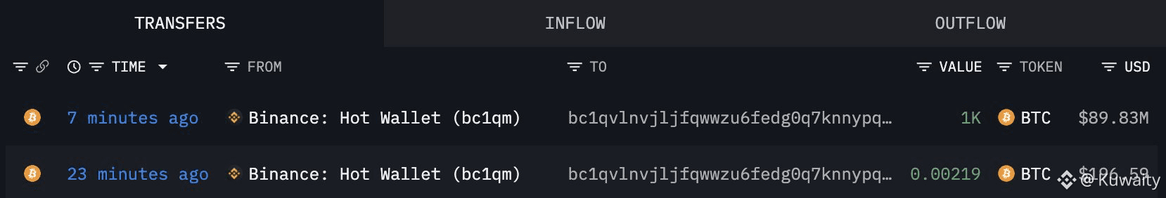 سحبت محفظتان جديدتان 1600 بيتكوين من منصة باينانس اليوم.