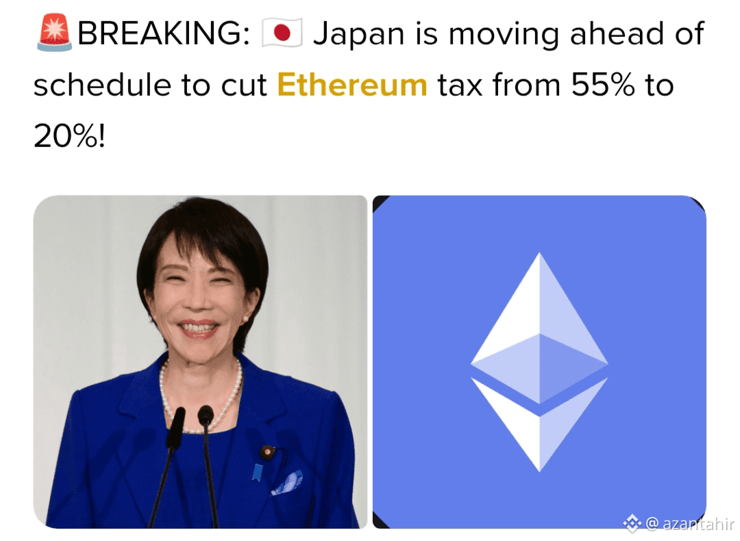 $ETH Japan is moving ahead of schedule with major crypto tax reforms, aiming to cut Ethereum and crypto capital gains tax from up to 55% down to around 20%.