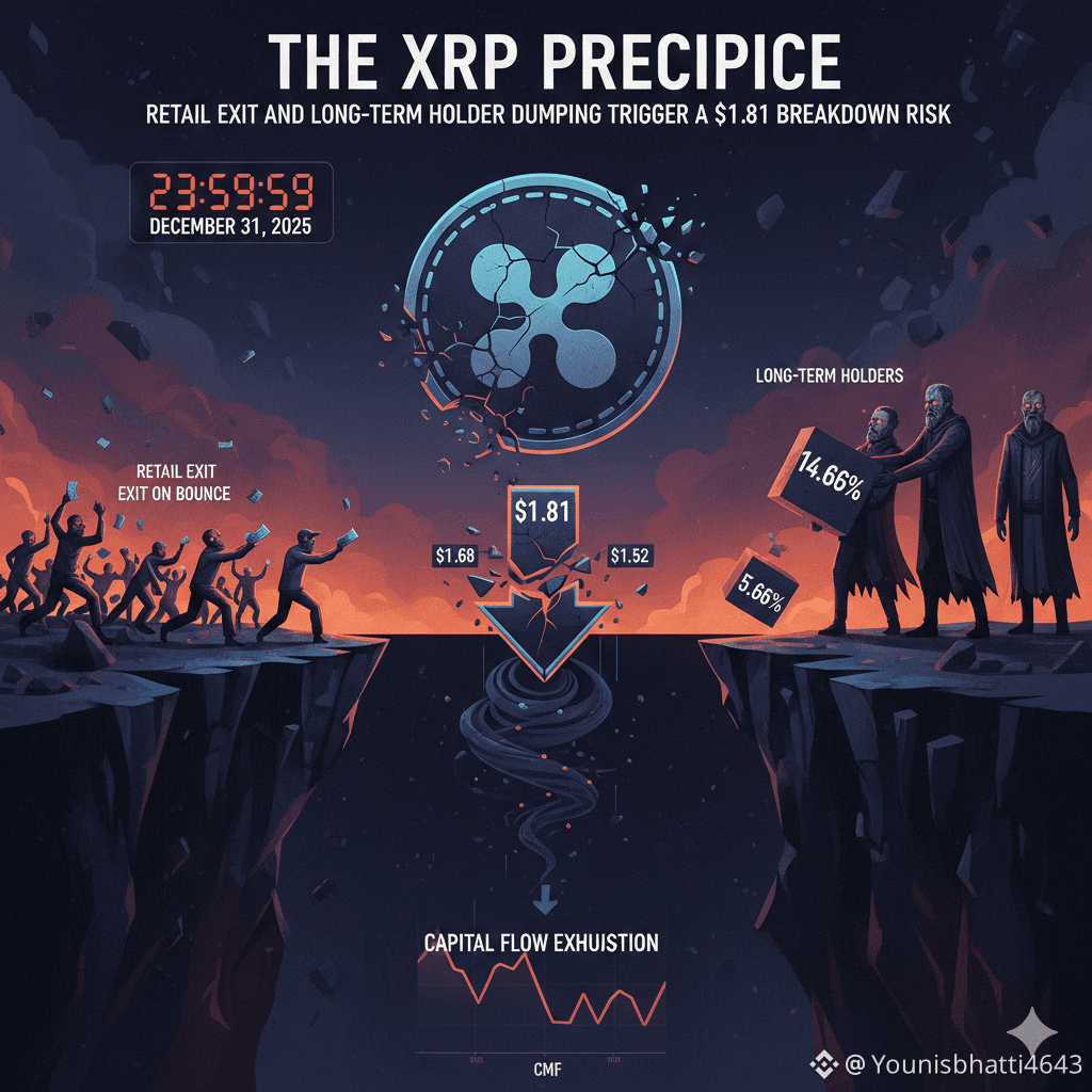 $XRP is ending 2025 in a very vulnerable position. Without a sudden "miracle" injection of capital or a massive news catalyst, the combination of retail exhaustion and long-term holder distribution suggests a rocky start to 2026.