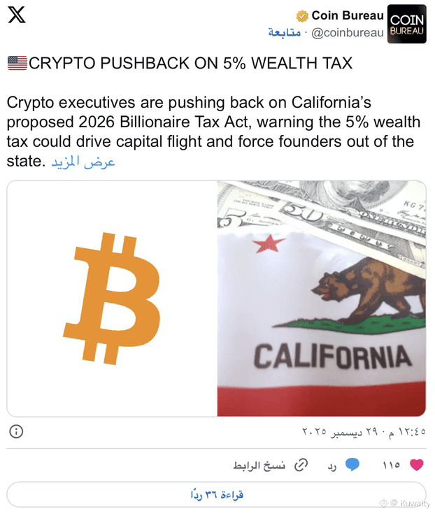 قد تعيد ضريبة الثروة تعريف مستقبل التكنولوجيا في الولاية. ويعتقد قادة العملات الرقمية أن هناك بدائل أفضل، داعين المشرعين إلى الموازنة بين العدالة والتنافسية.