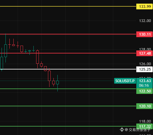 如果夜间4小时级别收不上125上方,那说明小级别反弹没有力度,再次下跌下方支撑位留意122-120-117这几个位置附近!#solana