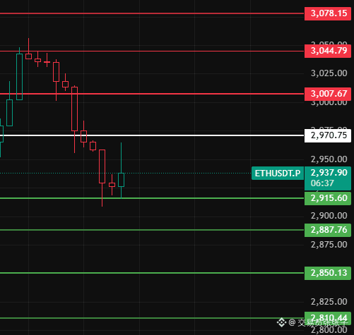 如果夜间4小时级别收不上2970上方,那说明小级别反弹没有力度,再次下跌下方支撑位留意2915-2888-2850这几个位置附近!#ETH走势分析