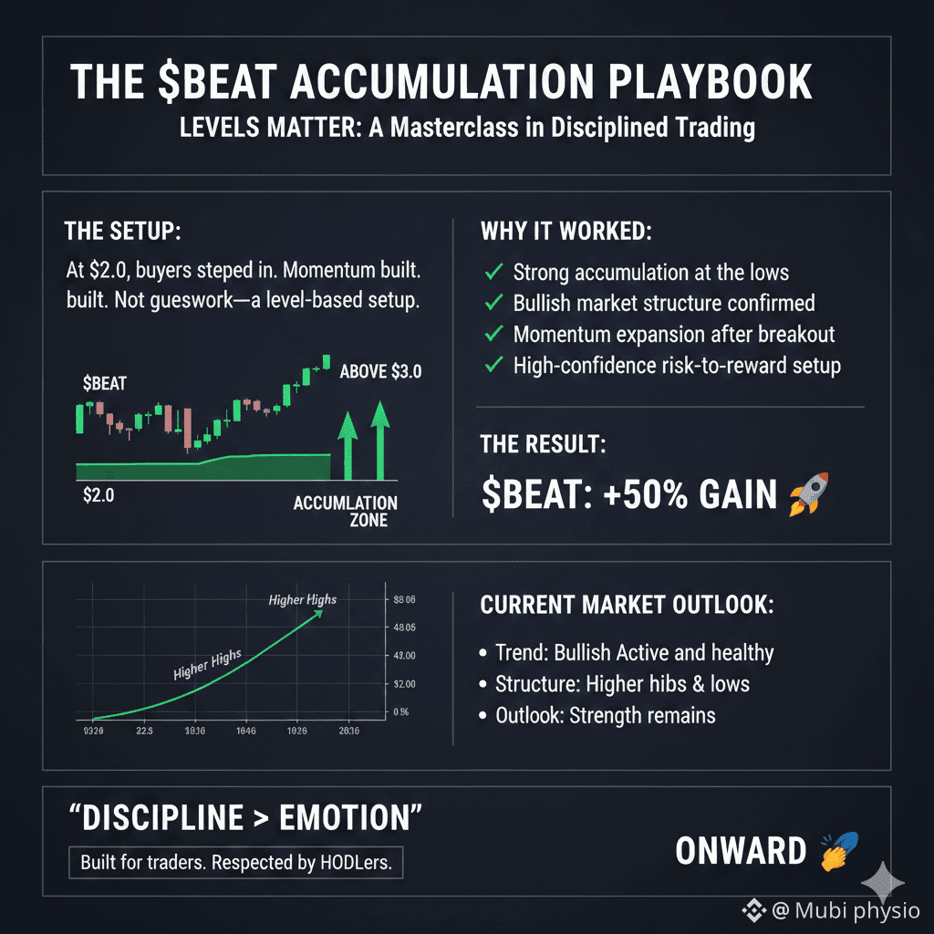 At the bottom range near $2.0, a clear accumulation structure formed. Buyers stepped in, selling pressure weakened, and momentum quietly began to build. This was not guesswork—it was a level-based setup backed by structure and patience.