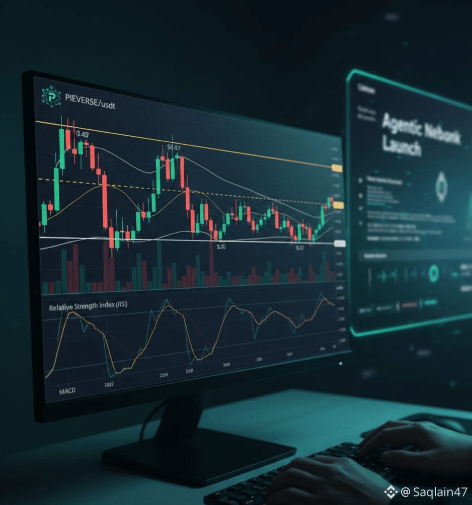 $PIEVERSE PIEVERSE/USDT is currently consolidating near $0.48–$0.57 following a recent rally. While the "Agentic Neobank" launch provides fundamental support, technical indicators suggest short-term exhaustion and potential volatility. Watch the $0.50 support.