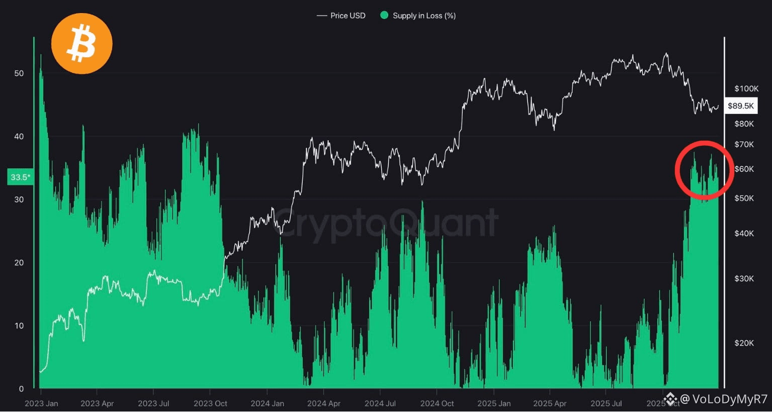 🔸 Наразі приблизно 33.5% загальної пропозиції Bitcoin утримується зі збитками, які не реалізовані. Це означає, що 1 з кожних 3 BTC був придбаний за ціною, вищою за поточну ринкову вартість.