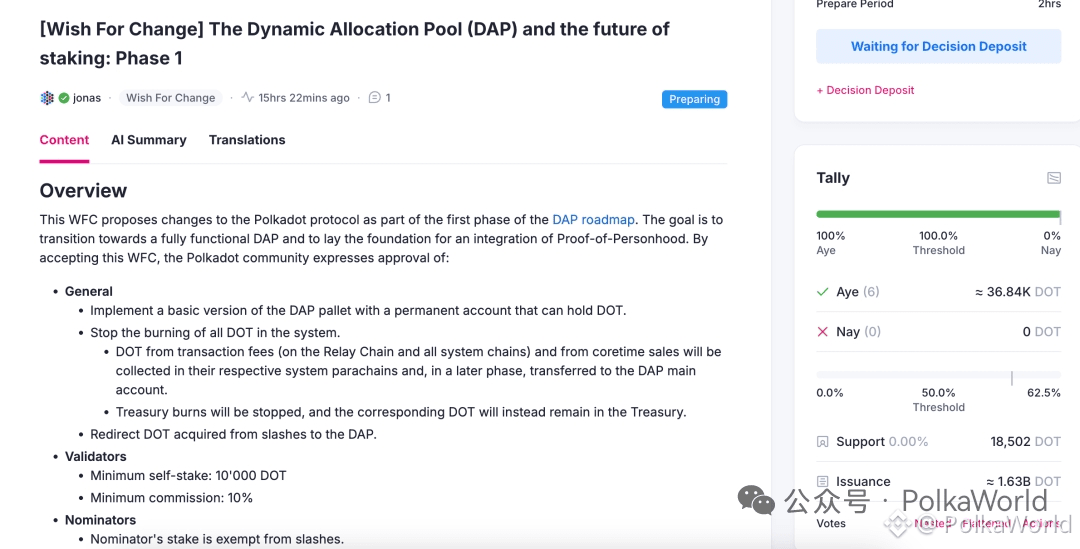 随着 Phase 1 提案已经提交,DAP 不再只是一个概念,而是开始真正影响 Polkadot 的发行、质押与国库结构。