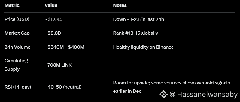 LINK is consolidating in a $12–$14 range after rejecting resistance around $14.50 earlier in December. Key indicators: