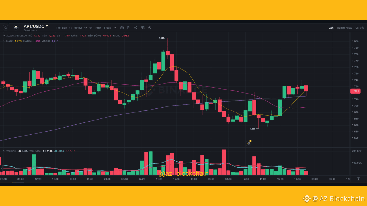 ✨Dữ liệu mô hình cho thấy khối lượng giao dịch của $APT đang hé lộ quá trình tích lũy âm thầm từ các tổ chức. Trong giai đoạn cuối, giá tăng tốc rõ rệt khi $APT vượt vùng kháng cự $1.72 nhờ lực mua duy trì liên tục.