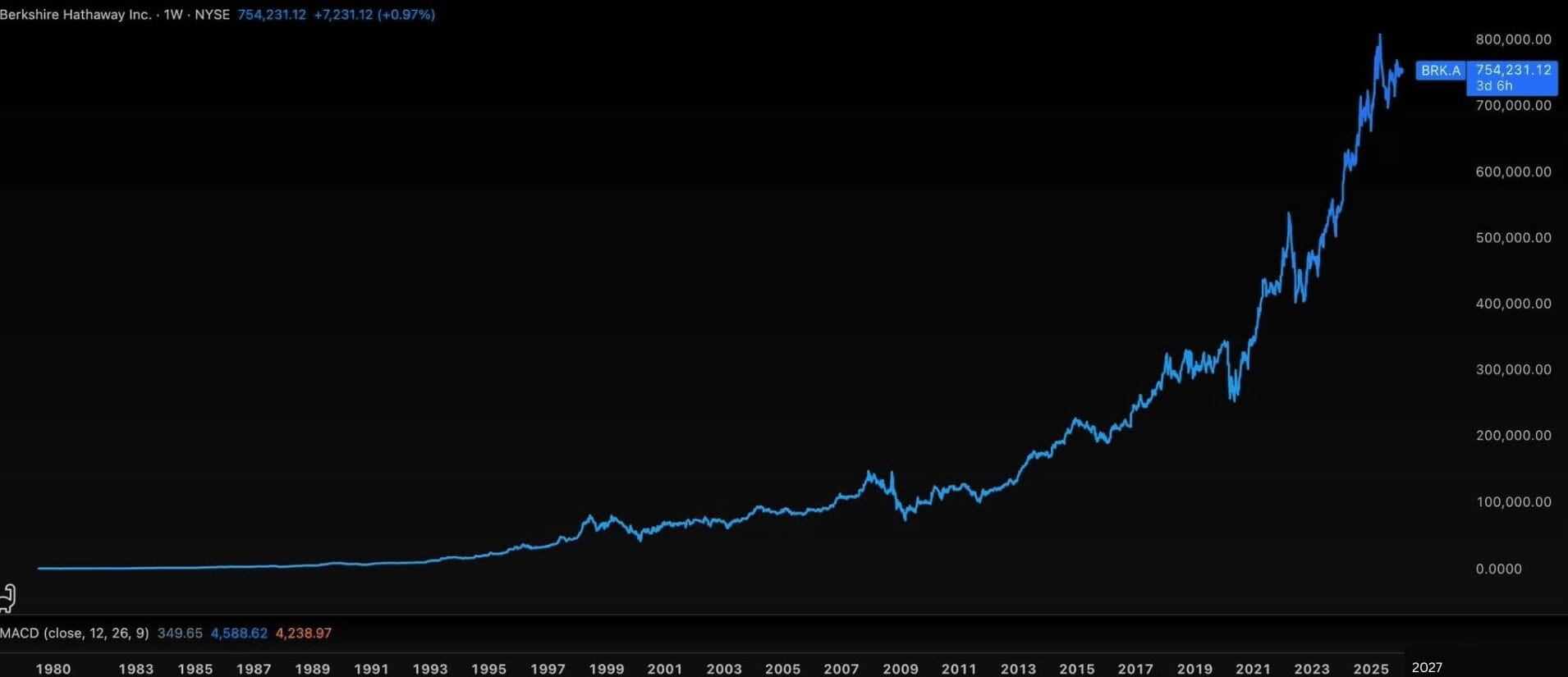 O singură acțiune de clasa A a Berkshire (~$BRK. A) are în prezent un preț de aproximativ 754.000 de dolari, exemplificând una dintre cele mai eficiente strategii de „cumpără și păstrează” vreodată demonstrate.