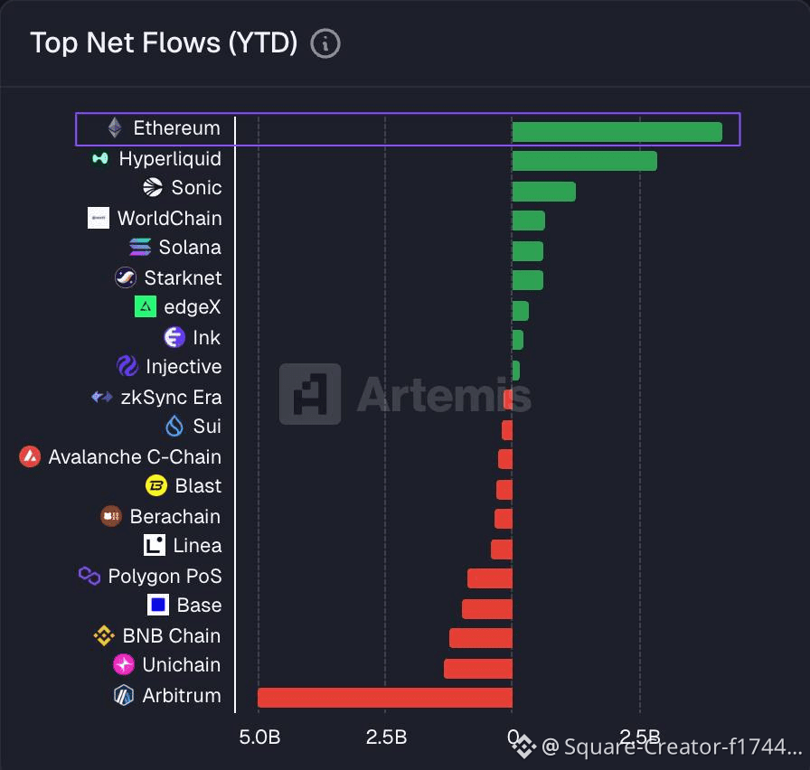 A notable trend this year is the concentration of capital moving into major blockchain networks. Ethereum has recorded a net inflow of approximately $4.2 billion in 2025, placing it at the forefront among all networks.