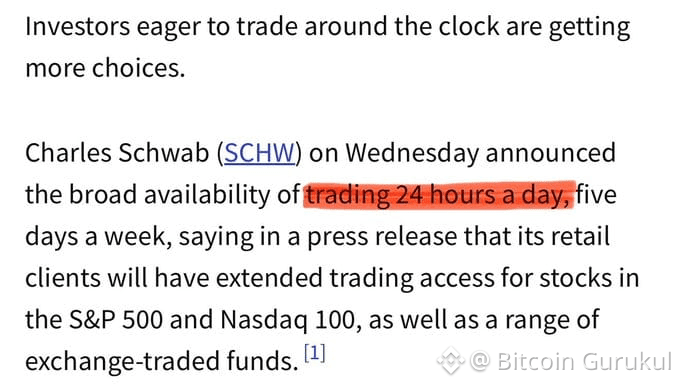 Charles Schwab (SCHW) just dropped major news that's about to reshape how Americans invest. Starting this week, their retail clients can now trade stocks around the clock—24 hours a day, five days a week. The announcement confirms that investors will have extended access to trade S&P 500 and Nasdaq 100 stocks, plus a variety of exchange-traded funds.