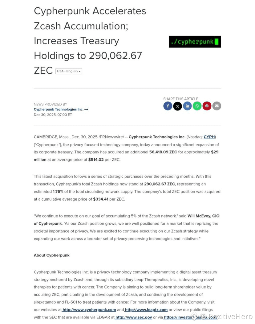 Когда компания с именем Cypherpunk заявляет о покупке приватной монеты на $29 млн, это не просто новость. Это — манифест.
